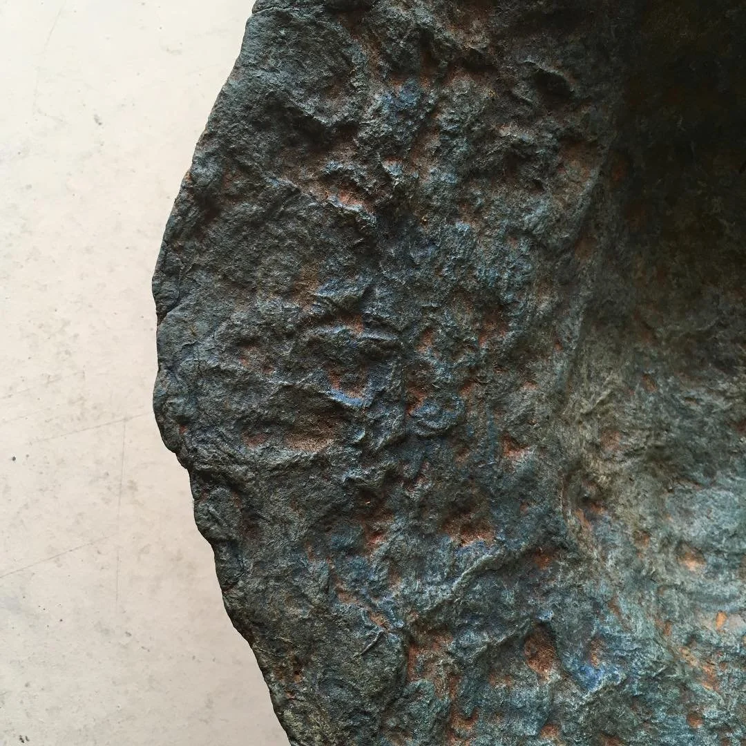 Ryo Azuma is a metal artist based in Osaka whose work blurs the boundary between sculpture and functional form. Drawing on a deep sensitivity to material and texture, he works almost exclusively with salvaged metals—copper, tin, steel, and iron—often sourced from the overlooked edges of the urban landscape. These timeworn fragments, marked by rust, dents, and history, are transformed into sculptural vessels and objects he calls Tekkari—a term rooted in old street slang for “metal goods,” now reimagined in his hands as luminous, contemplative forms. His pieces speak to the enduring beauty of imperfection and the quiet dignity of the discarded, offering a fresh material language for contemporary interiors and spaces that value narrative and nuance.